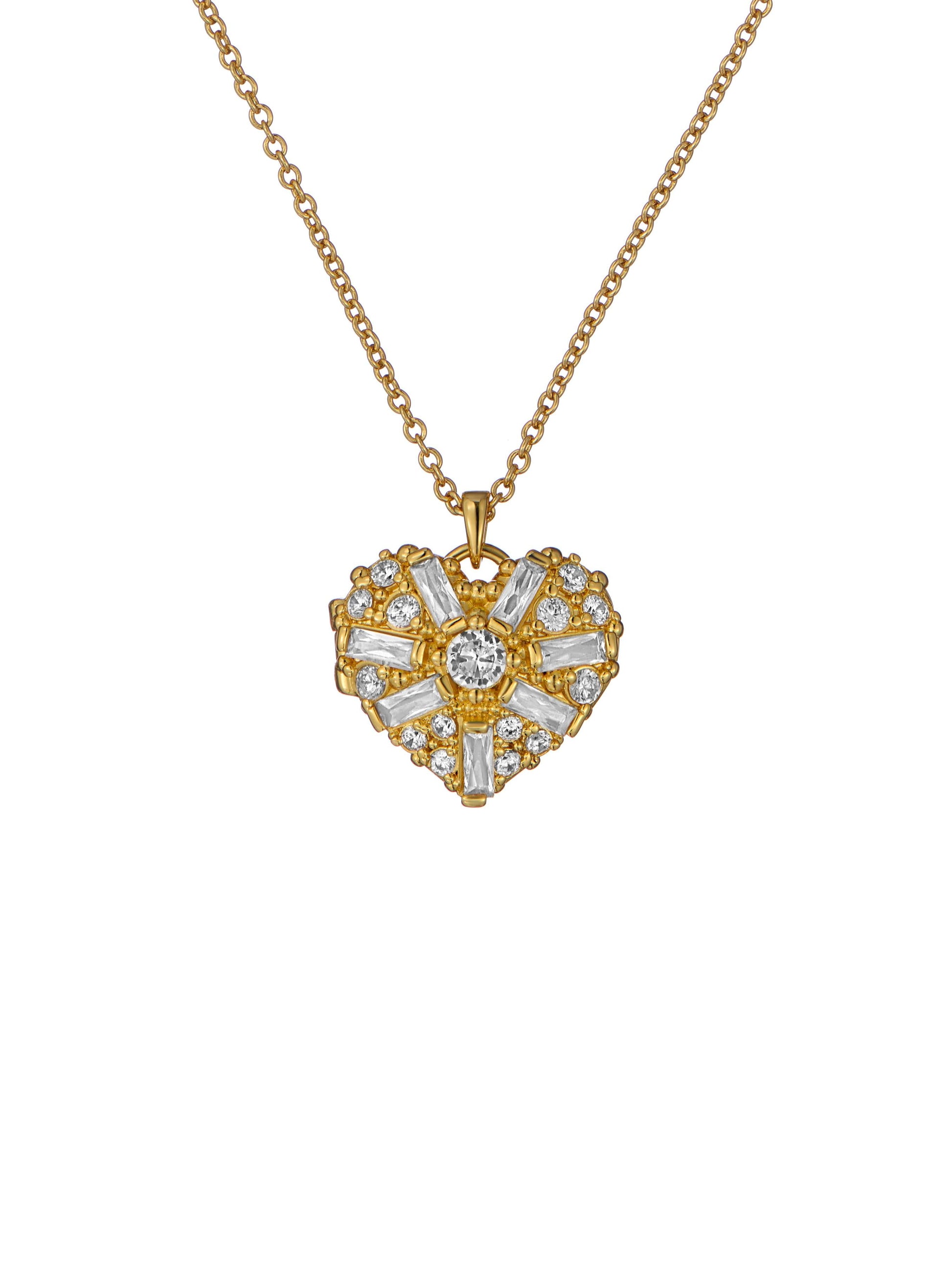 Cherish precious moments with Ted Baker’s Cherish Crystal Cluster Heart Locket Pendant Necklace. This heart-shaped locket is adorned with fine European crystals and can fit a photo inside. Finished in gold-tone plating with clear crystals, the necklace features an adjustable extender chain and comes packaged in a Ted Baker branded gift box—perfect for gifting or treating yourself.