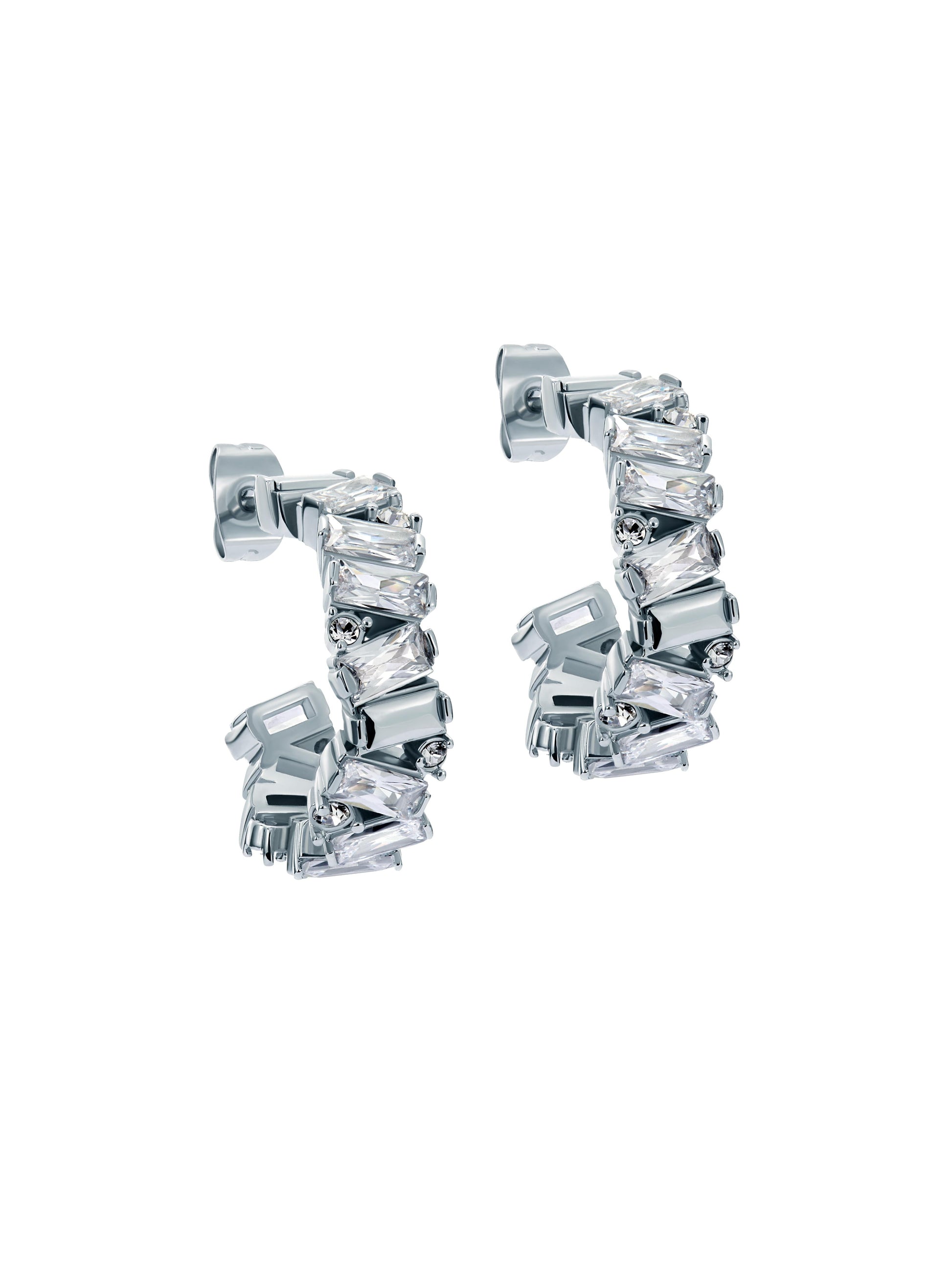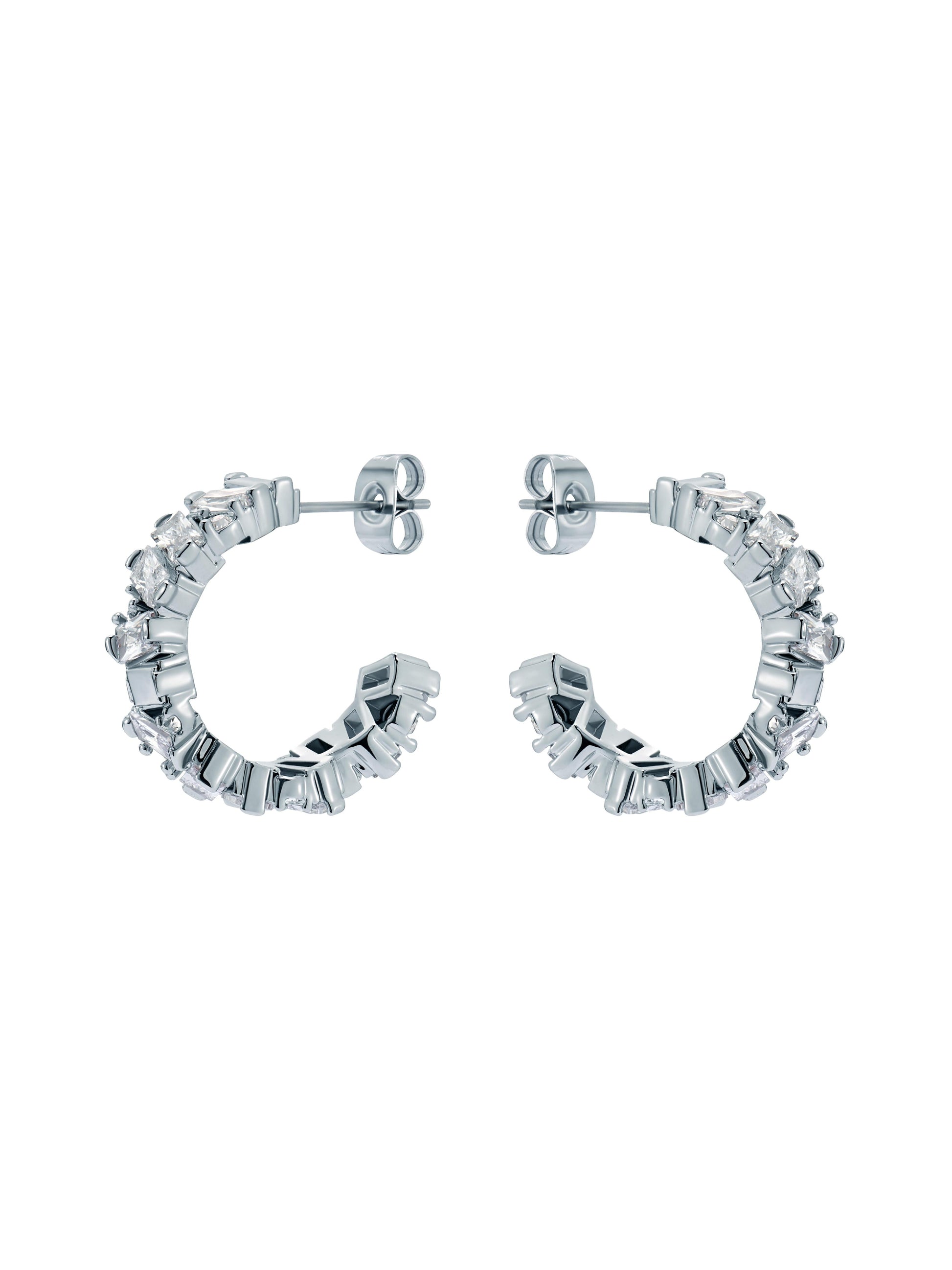 Add a touch of elegance with a modern twist with Ted Baker’s Clarence Crystal Cluster Hoop Earrings. These hoops feature a mix of baguette and round European crystals arranged in an asymmetric design. Finished in sleek silver-tone plating, they have hypoallergenic posts and come packaged in a Ted Baker branded gift box, perfect for gifting or treating yourself.
