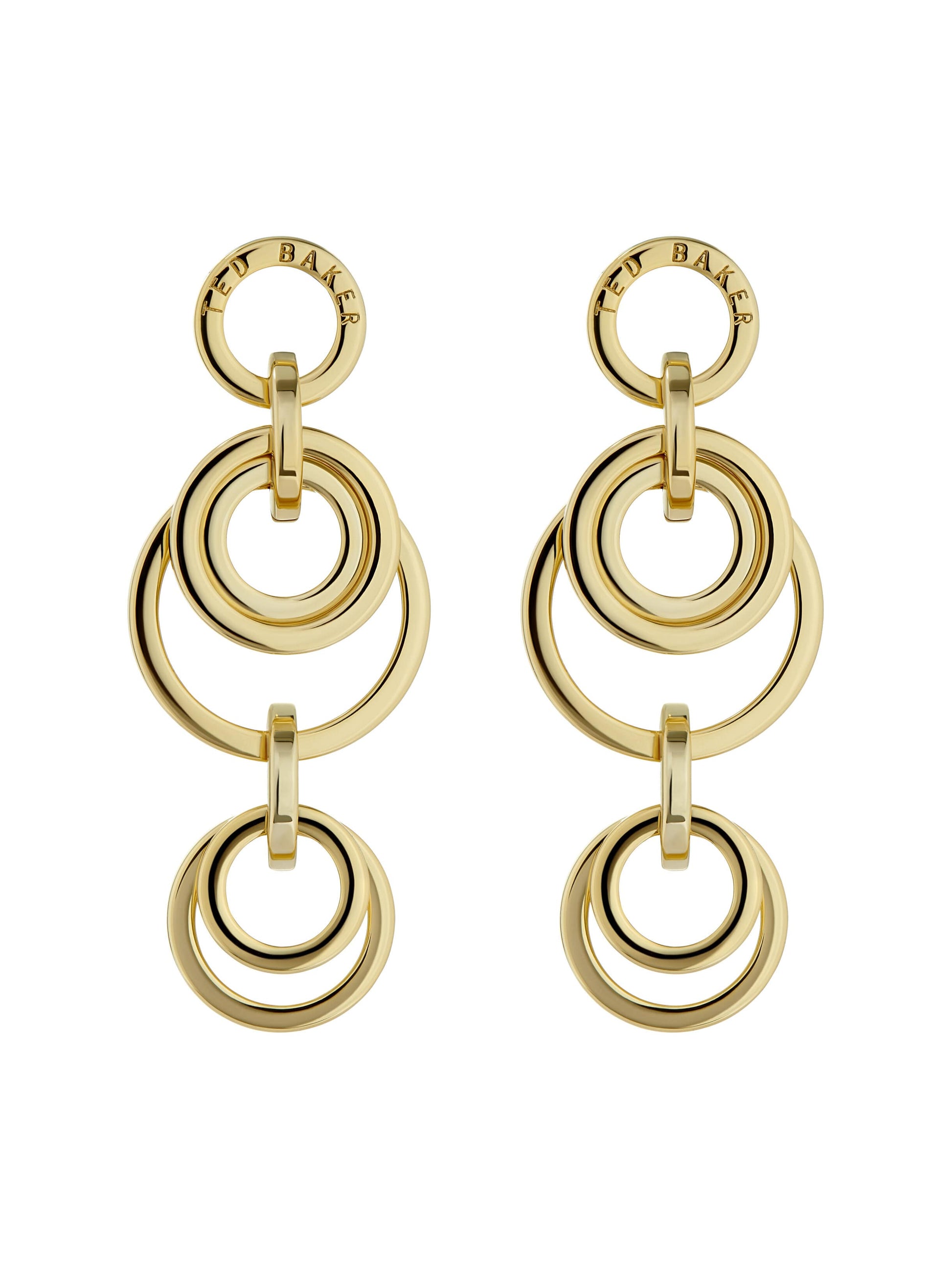 Create circles of influence with Ted Baker’s Huliet Muti Hoop Drop Earrings. A series of metal bands hang gracefully, adding playful movement to your style. Finished in gold-tone plating. Suitable for pierced earrings only. Comes in a Ted Baker branded gift box.
