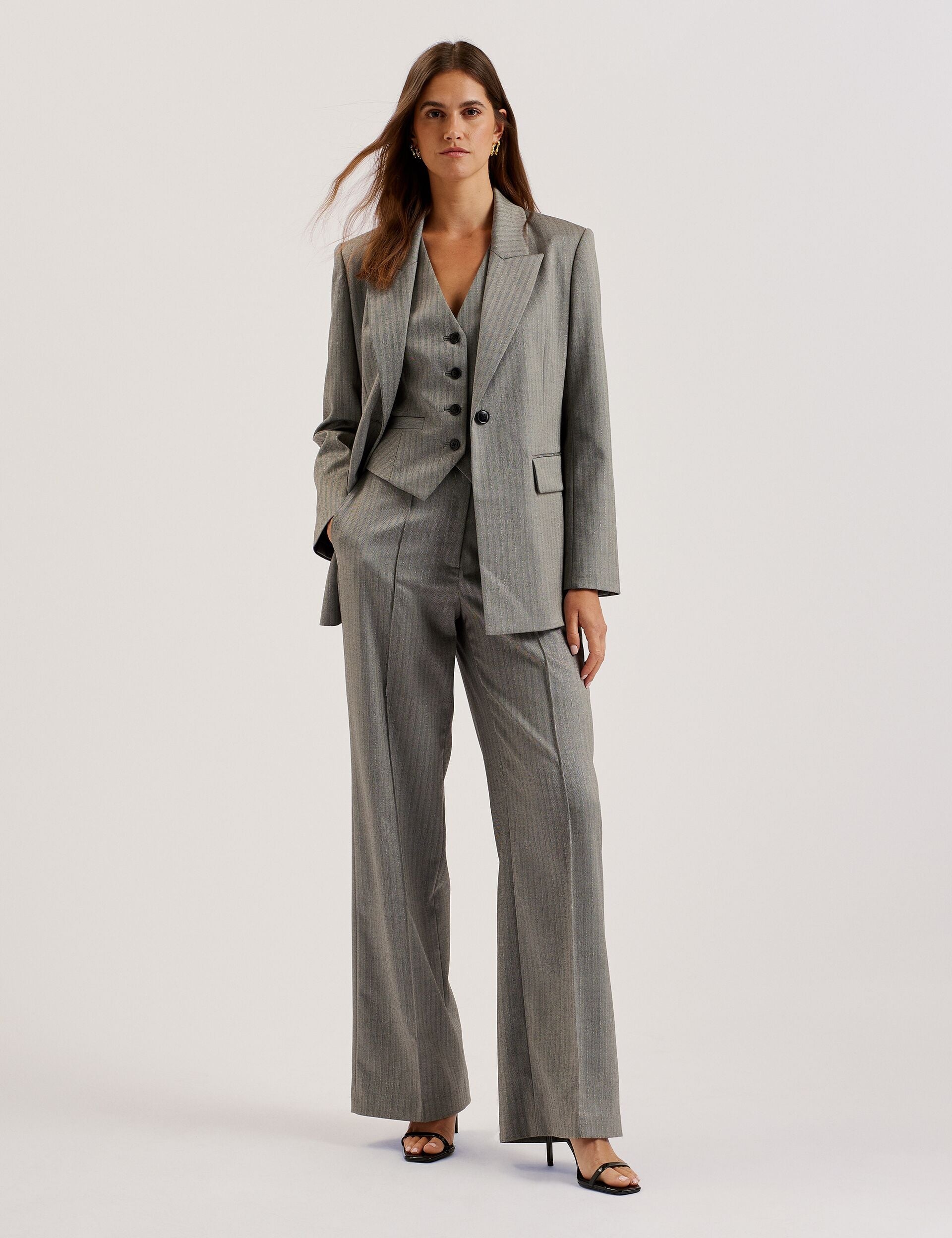 Herringbone Wide Leg Tailored Trousers