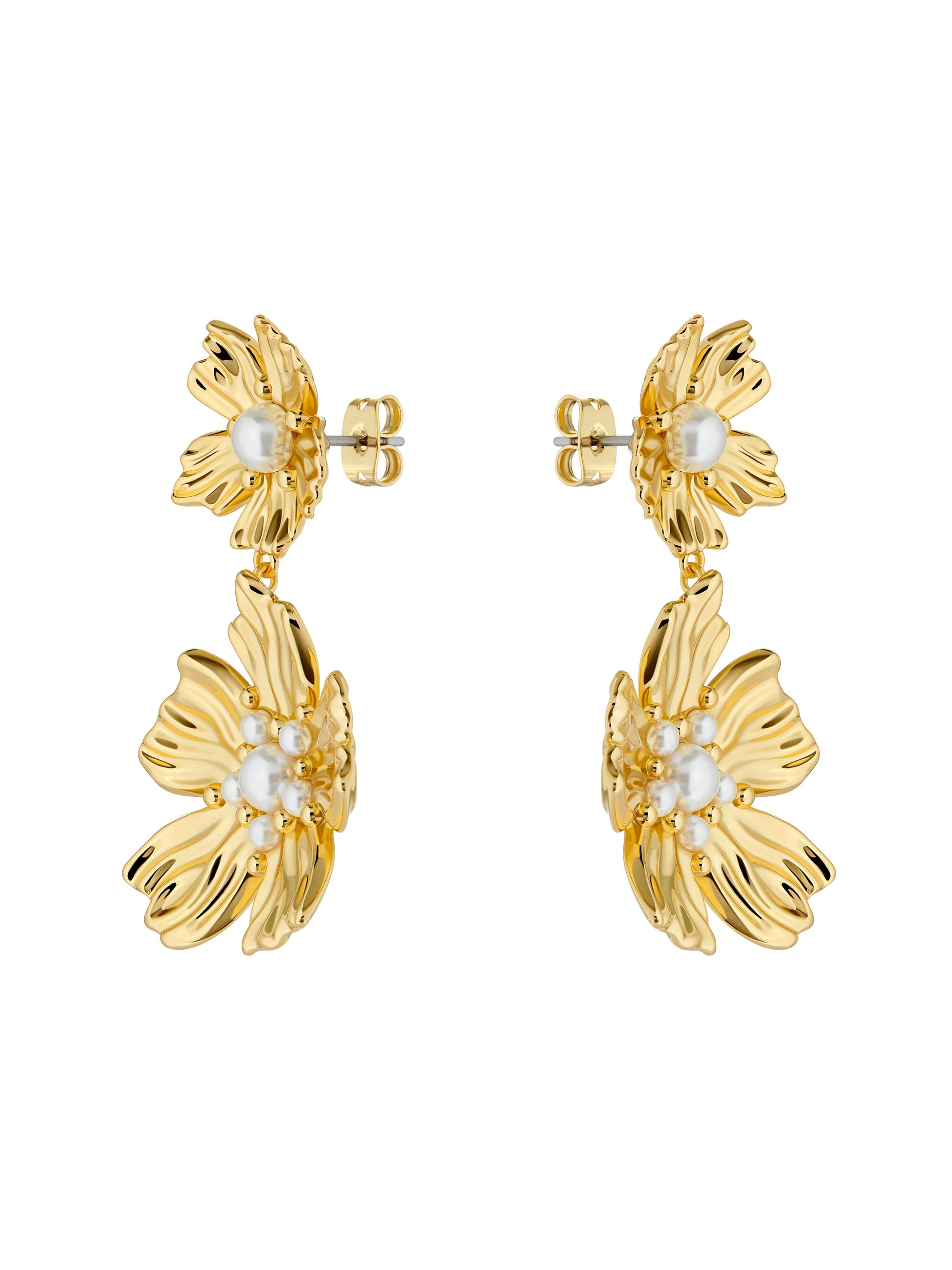 Make a Spring statement with the Ted Baker Petaria Flower Statement Drop Earrings. Sculptured metal flowers, embellished with faux pearls and finished with gold-tone plating. Featuring large stud backs for a secure fit and packaged in an elegant Ted Baker branded gift box with matching items available.