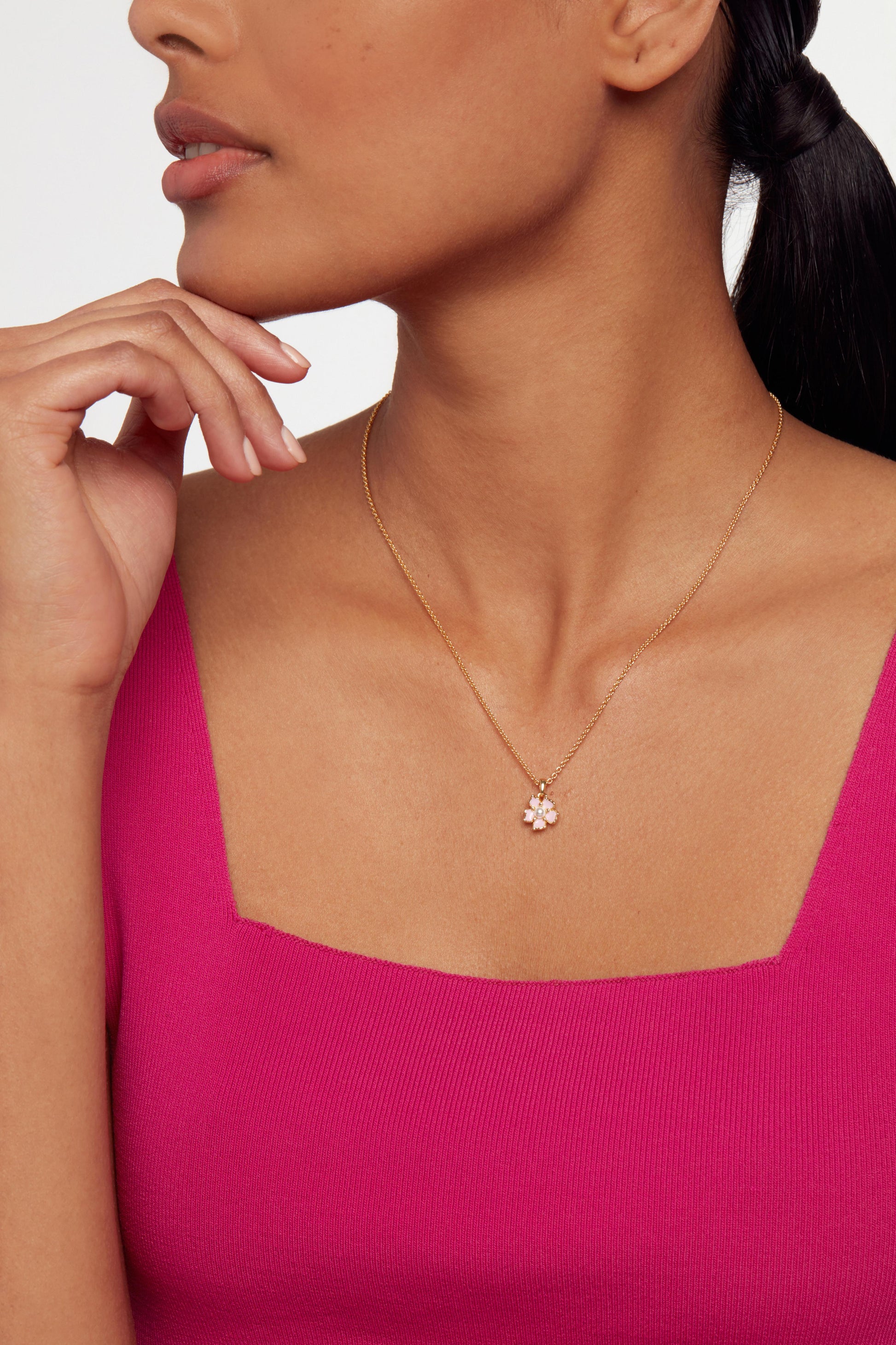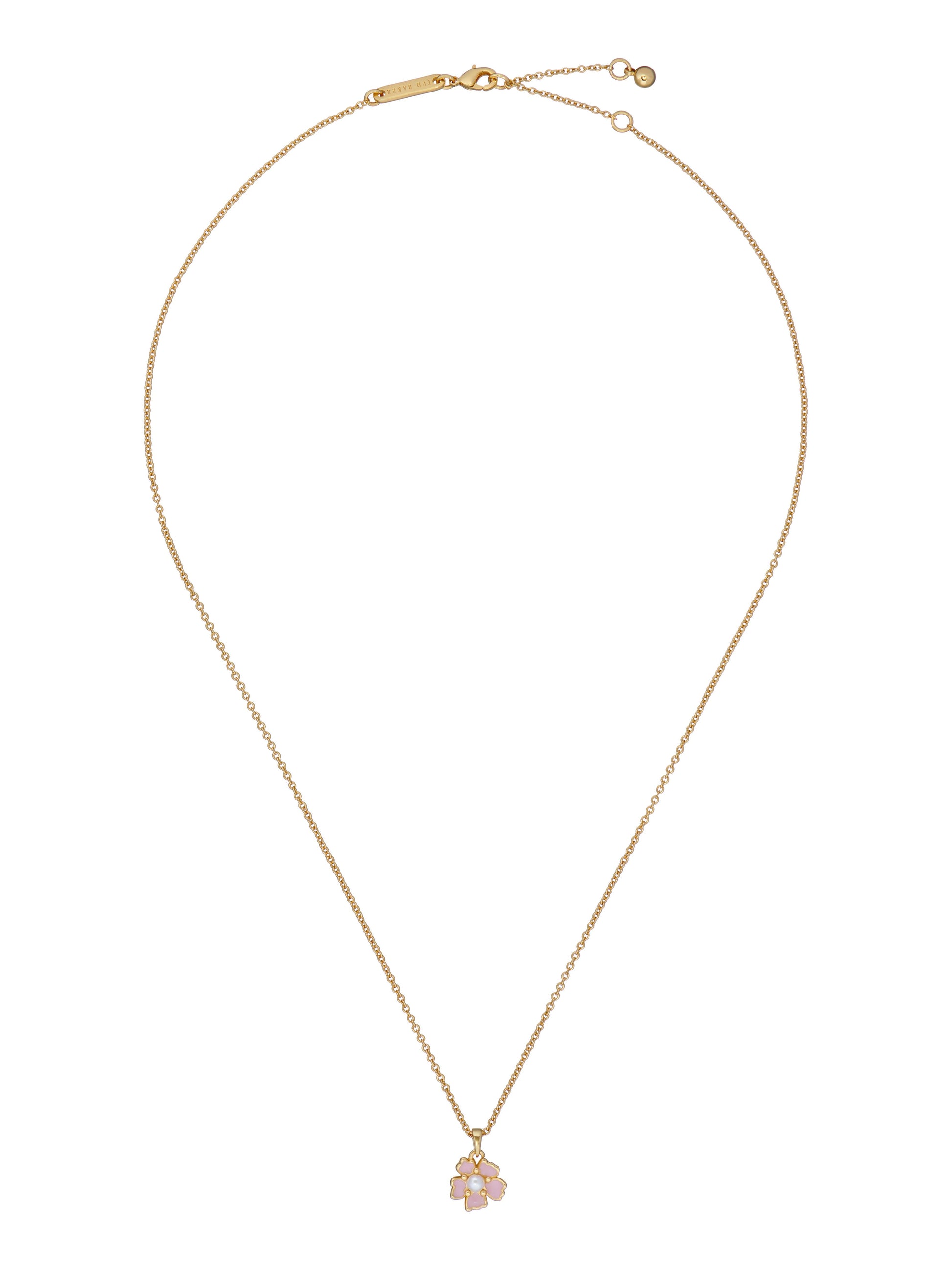 Tie your style and Spring together with the Ted Baker Petiies Flower Pendant Necklace. A subtle flower, enamelled in tonal pinks, embellished with faux pearls and finished with gold-tone plating. Features a subtle logo bar and an adjustable clasp to get just the right fit, all packaged in an elegant Ted Baker branded gift box with matching items available.