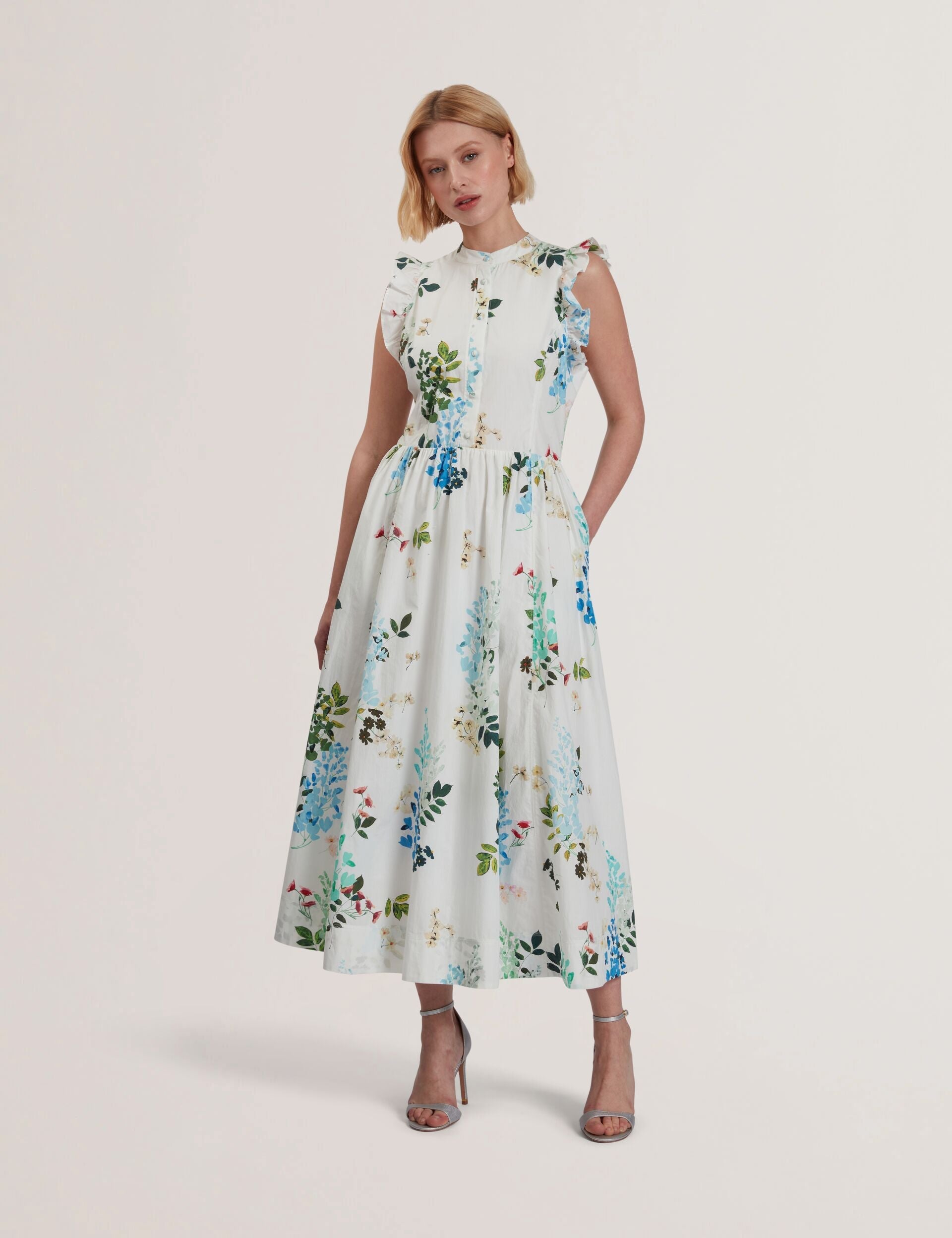 Sleeveless Floral Cotton A-Line Midi Dress