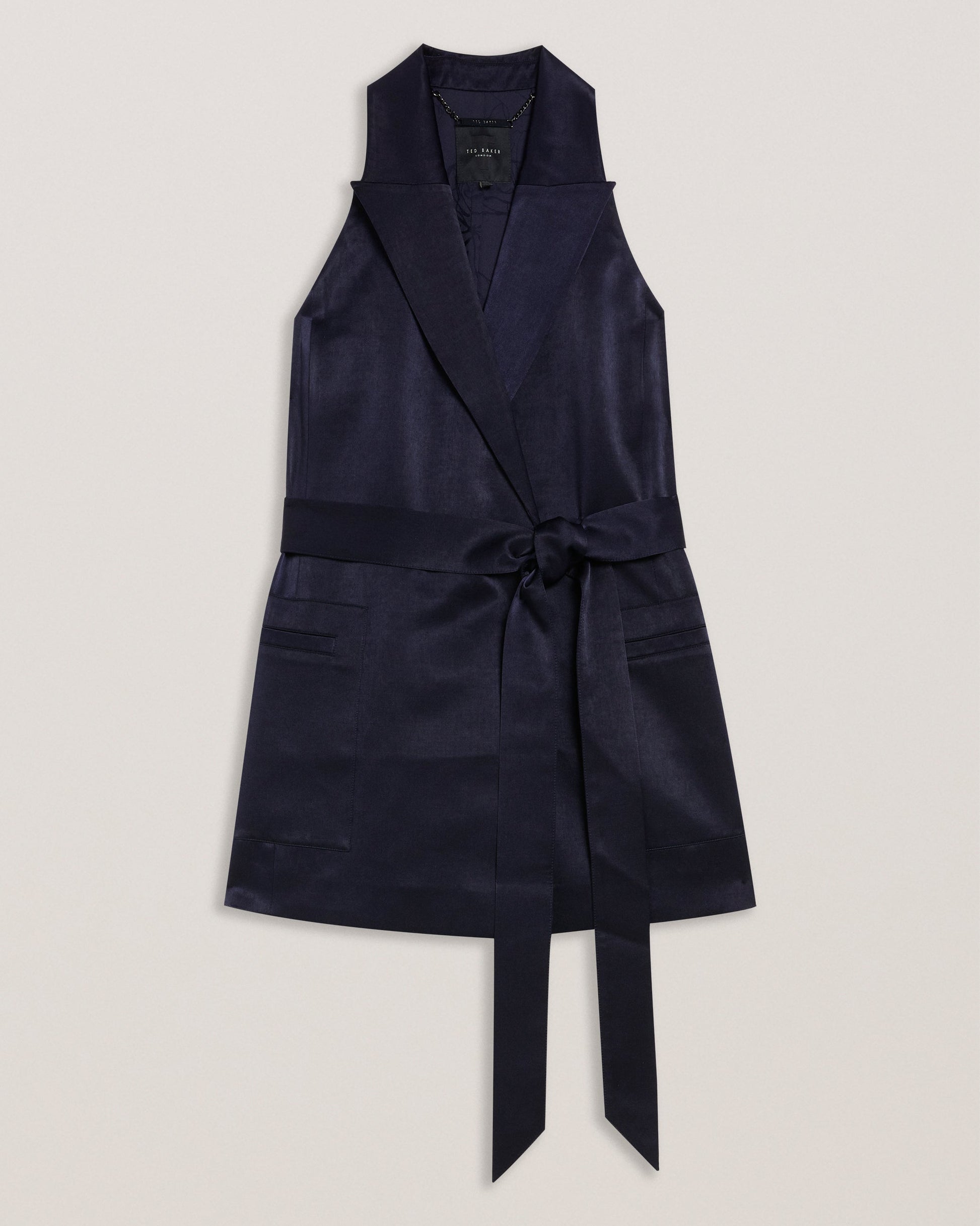 Meet TEERU, your new go-to: a sleeveless tailored vest that’s as chic as it is effortless. The wrap front and tie belt create a flattering fit, while the v-neck adds a touch of sophistication.