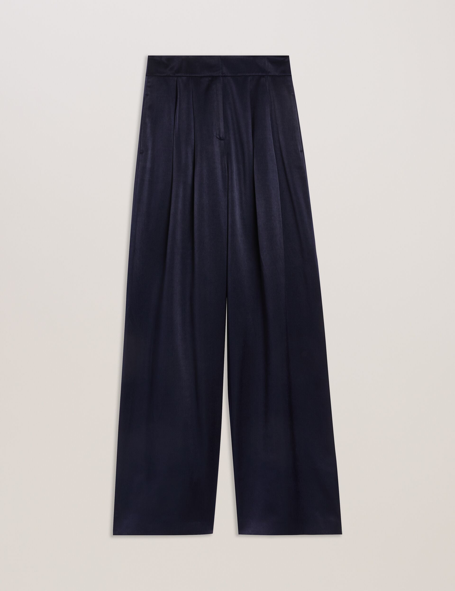 TEERUT brings a dose of glamour to tailored style with its shimmering satin finish and flowy wide leg design. These trousers are fitted at the waist with a concealed hook fastening to keep those smooth lines, and we've added double pleats into the front to bring even more volume.