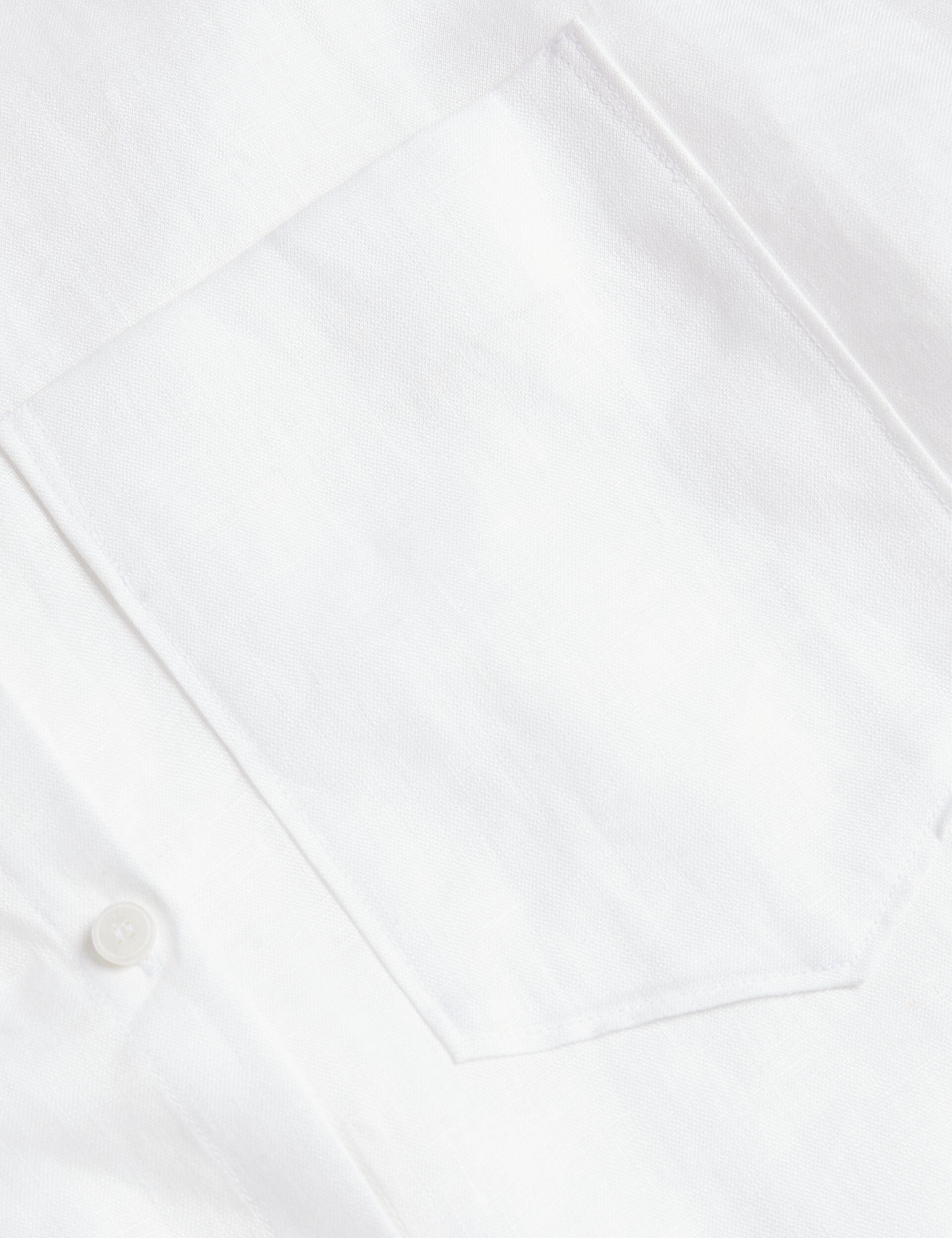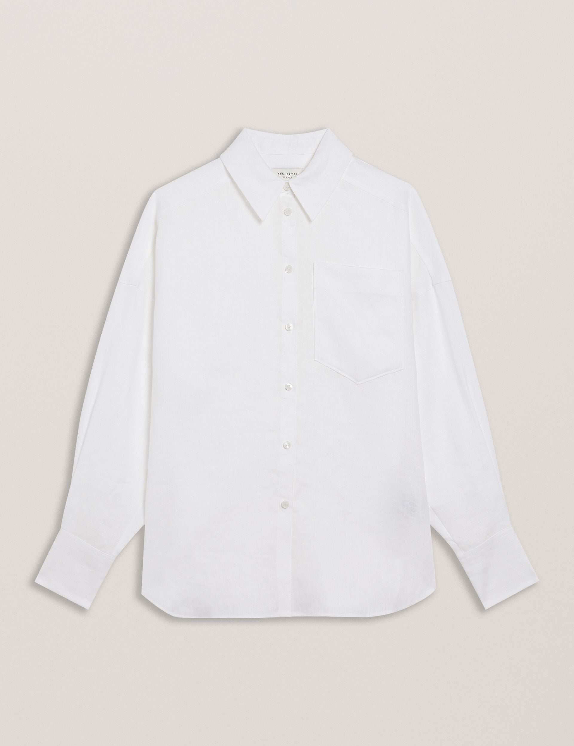 Every wardrobe needs a classic linen shirt, and TOLOCA makes this style even more wearable with its oversized fit. Its curved longline hem will layer like a dream over tailored trousers or mini dresses, and the patch pocket on the chest adds to its laid back feel.